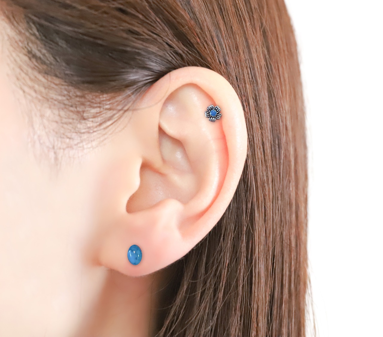 お花 フラワー エスニック ボディピアス アンティークシルバー 14G 16G 18G 軟骨ピアス 片耳