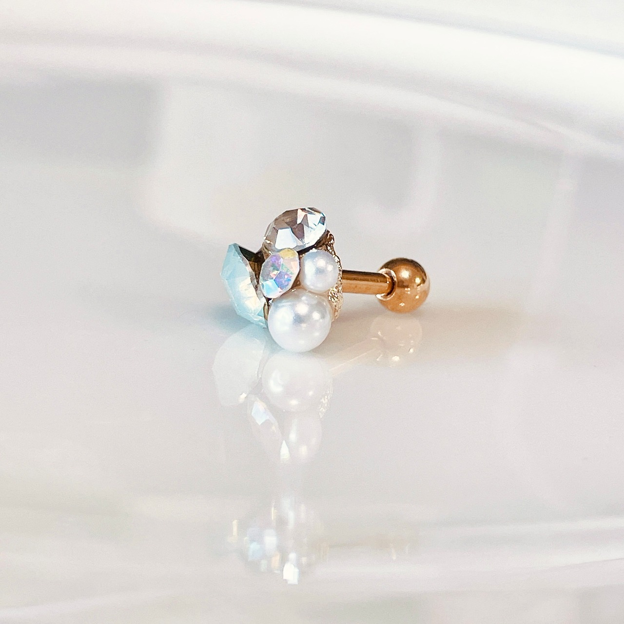 繊細な輝きが耳元でそっときらめく、上品なビジューデザインのボディピアス。