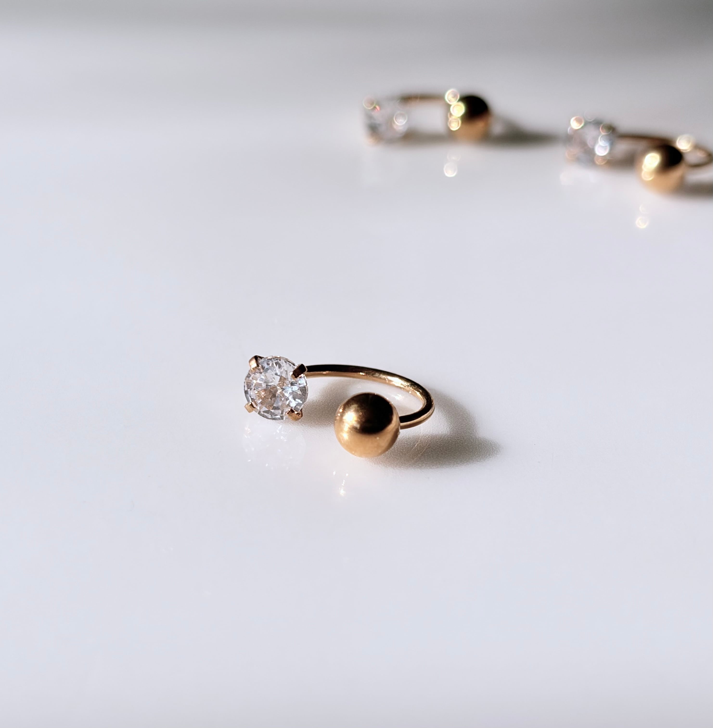 ホールが細いかたもOK✰ ボディピアス 一粒クリスタル サーキュラーバーベル ゴールド 20G 軟骨ピアス 片耳 1個のお値段