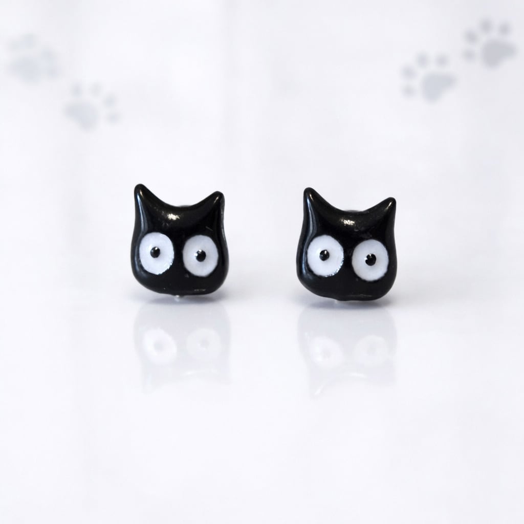 思わず目が合う、愛嬌たっぷりの黒猫ピアスです。
