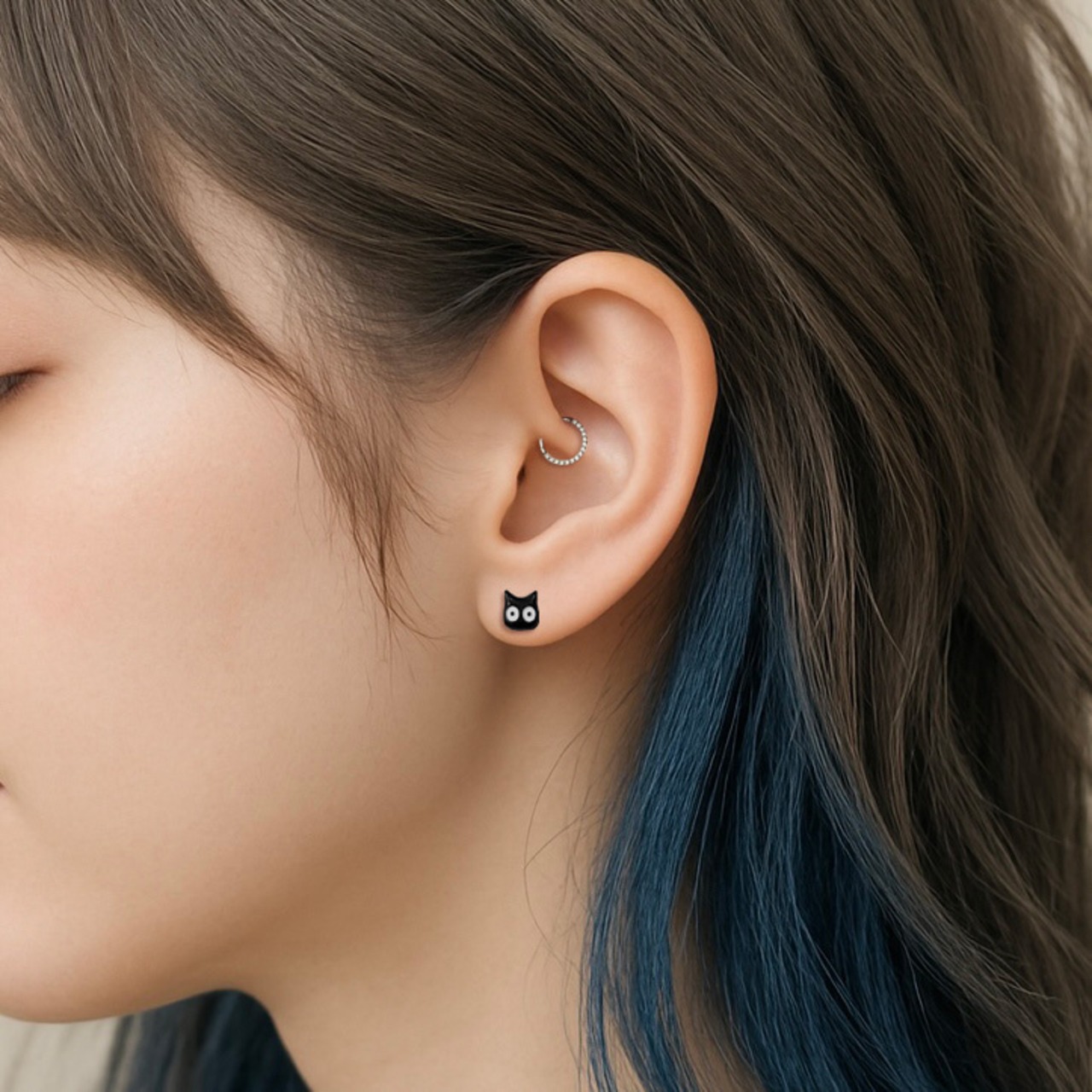 つぶらな瞳がたまらない、黒猫モチーフのボディピアスです。ころんとした立体感で、耳元にさりげない遊び心をプラス。