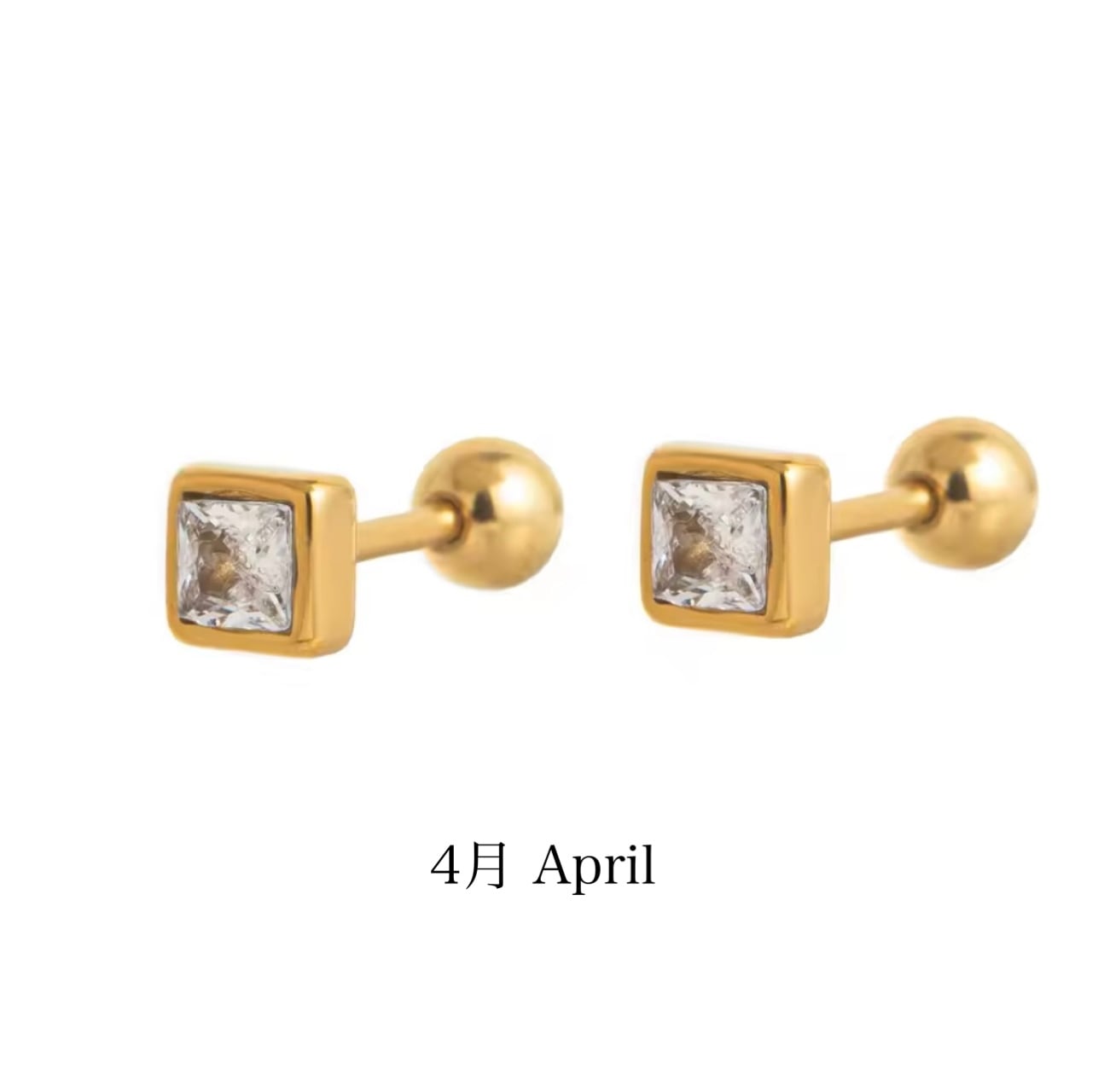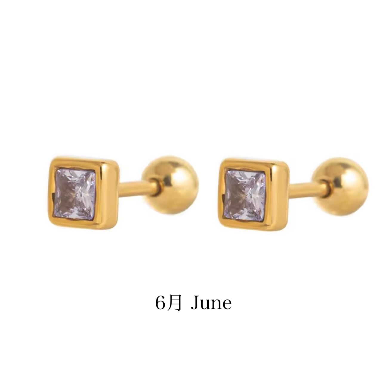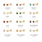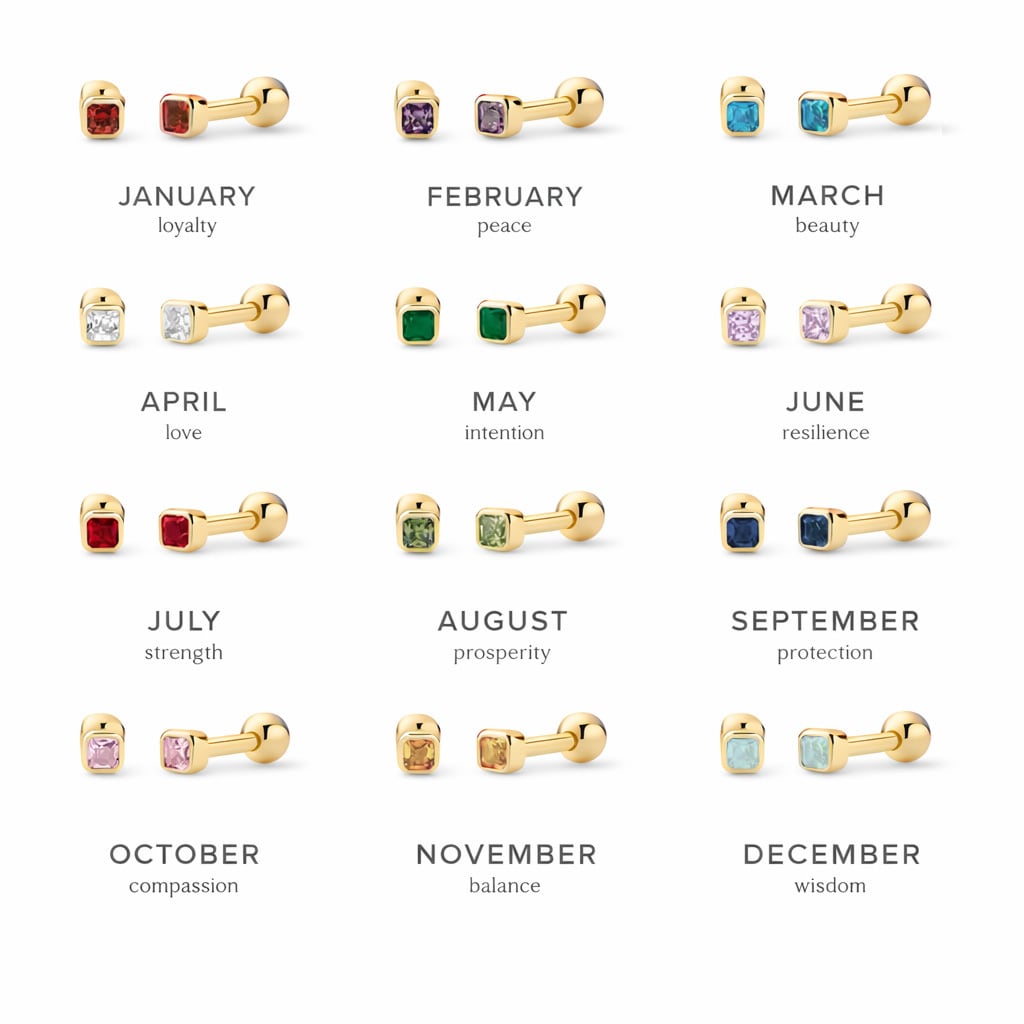 誕生石カラーを施した、小さなスクエア型が上品なボディピアスです。シンプルなフォルムに、さりげないきらめきを閉じ込めました。