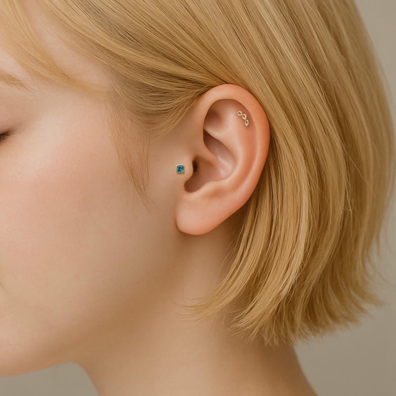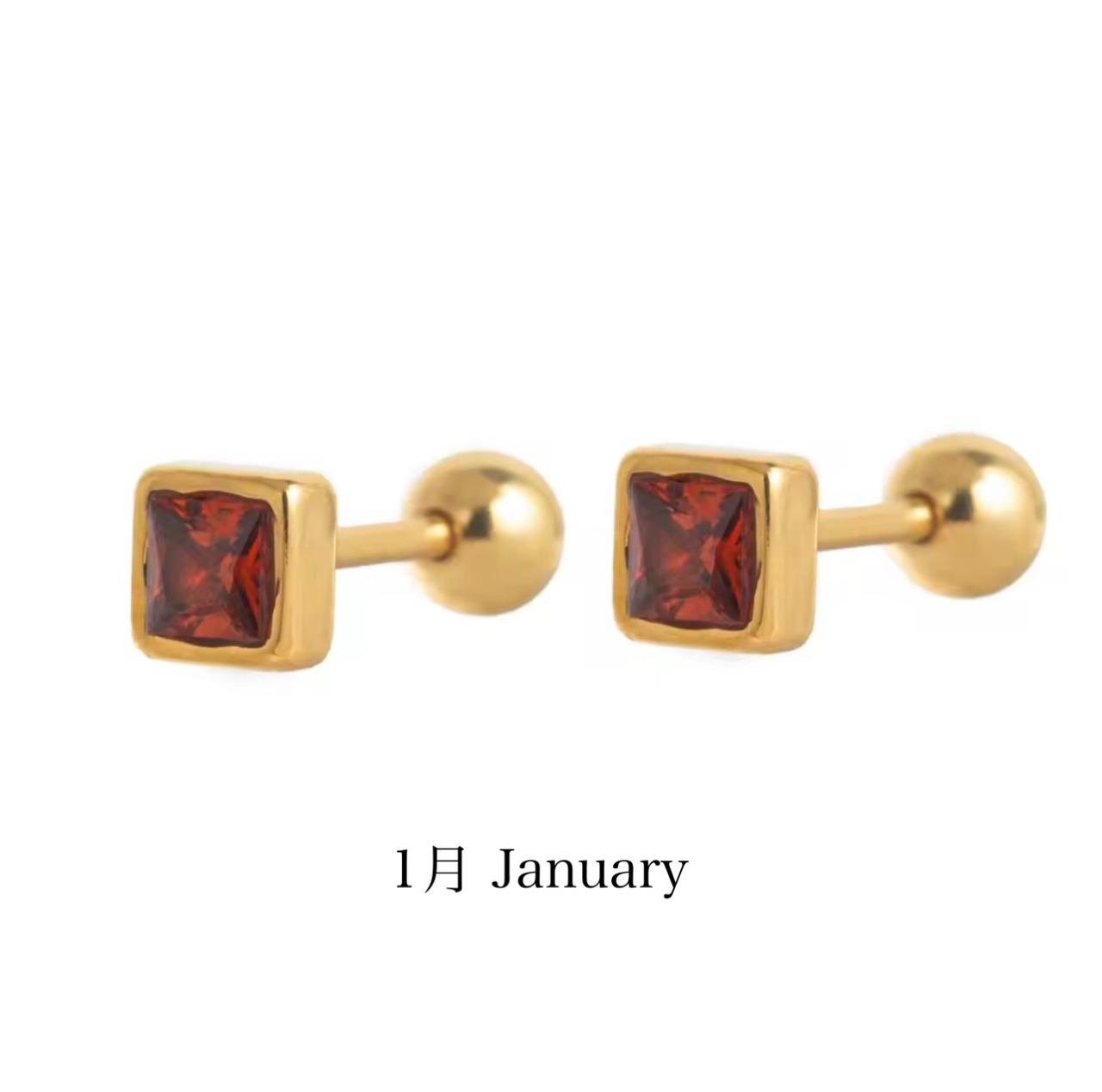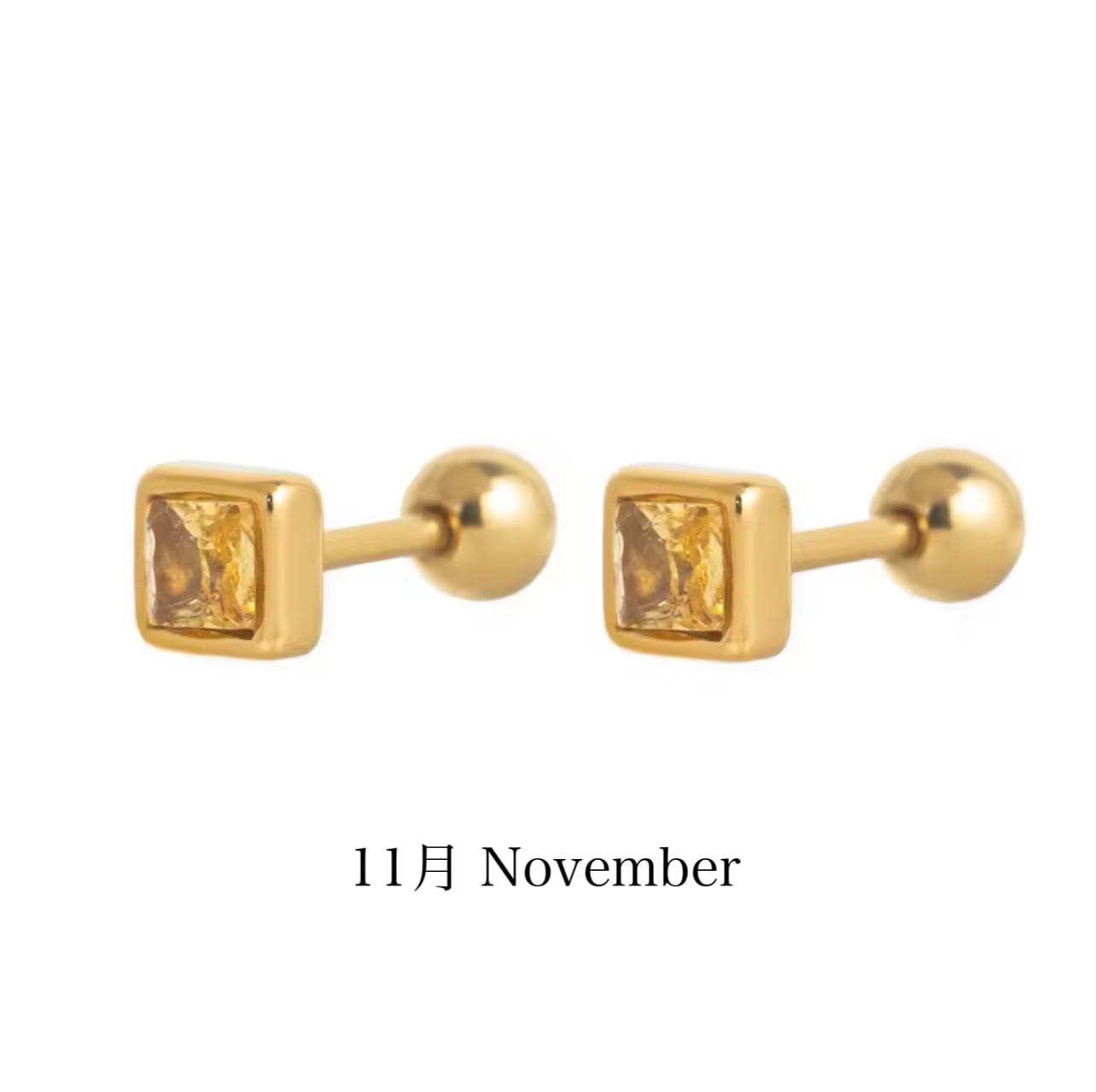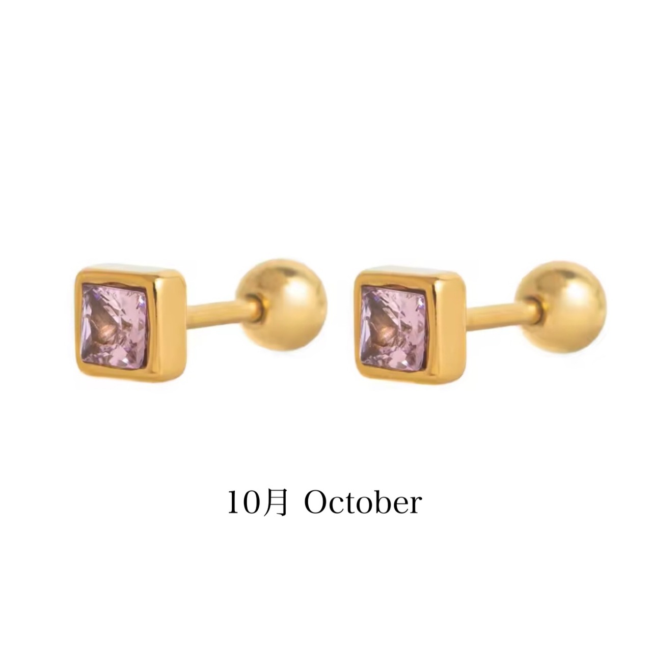 誕生石カラーを施した、小さなスクエア型が上品なボディピアスです。シンプルなフォルムに、さりげないきらめきを閉じ込めました。