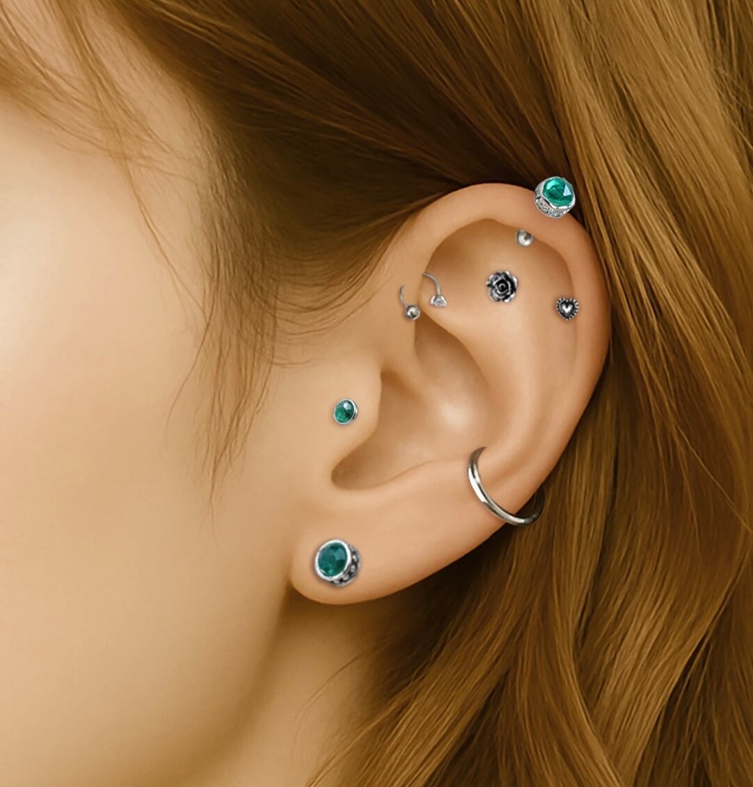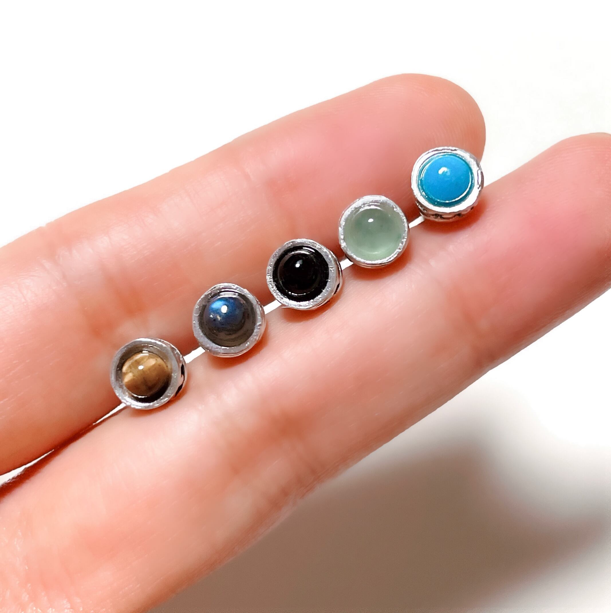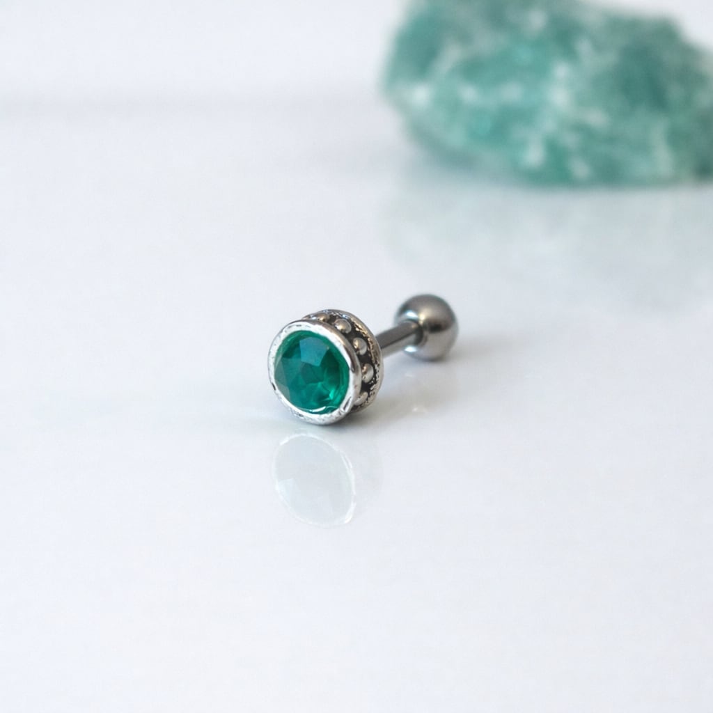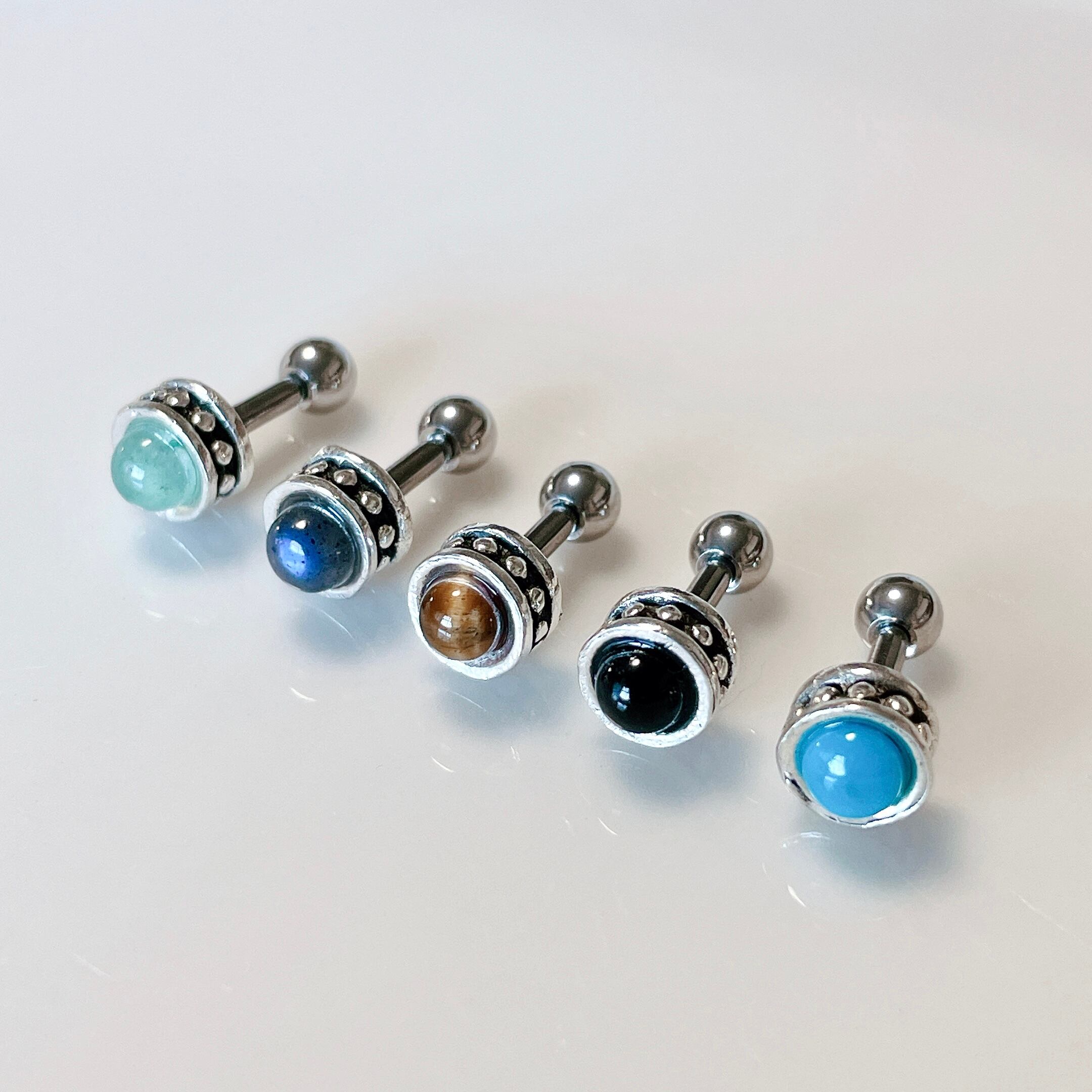 天然石 ジェンダーレスピアスシリーズ グリーンオニキス ローズカット加工 ボディピアス 14G 16G 18G 軟骨ピアス 片耳