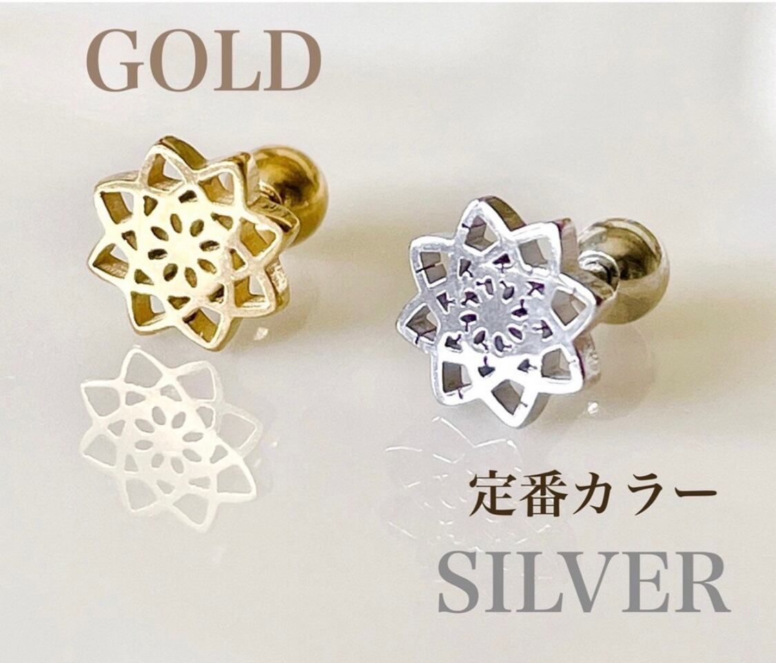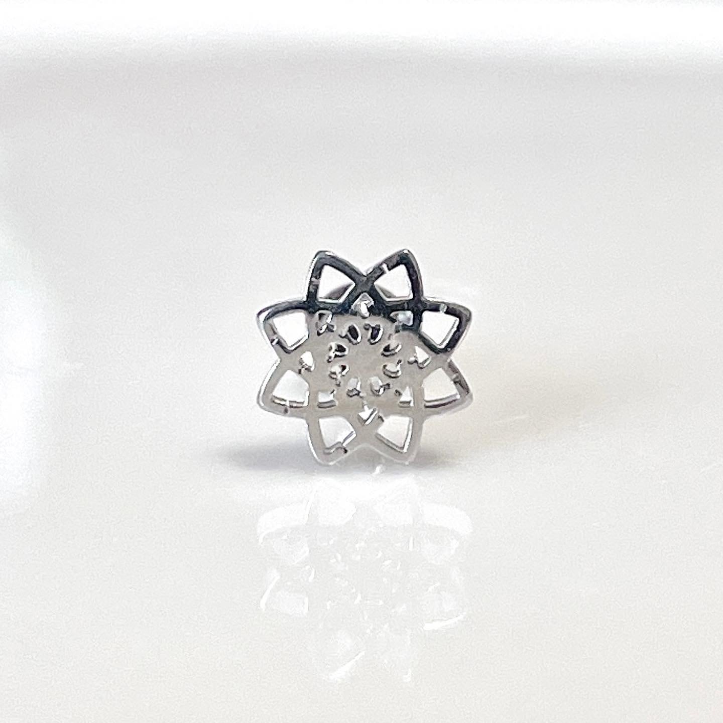 ロータスモチーフでシンプルなものは珍しく、ユニセックスなデザインのボディピアスです+。:.゚✳︎