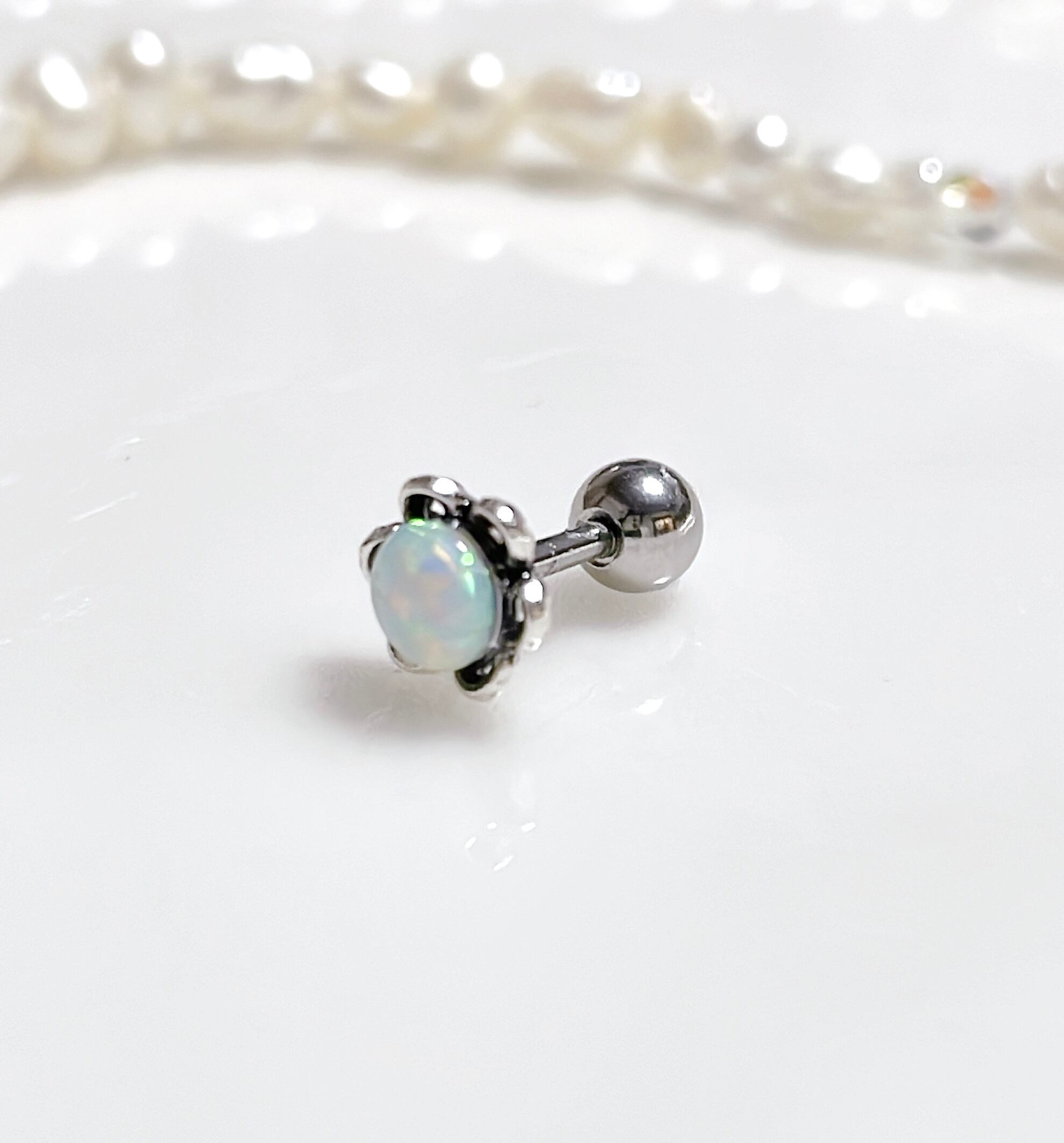 お花 オパール ミニフラワー ボディピアス アンティーク 小ぶり 18G 16G 軟骨ピアス 片耳