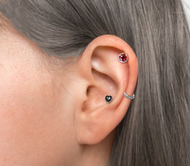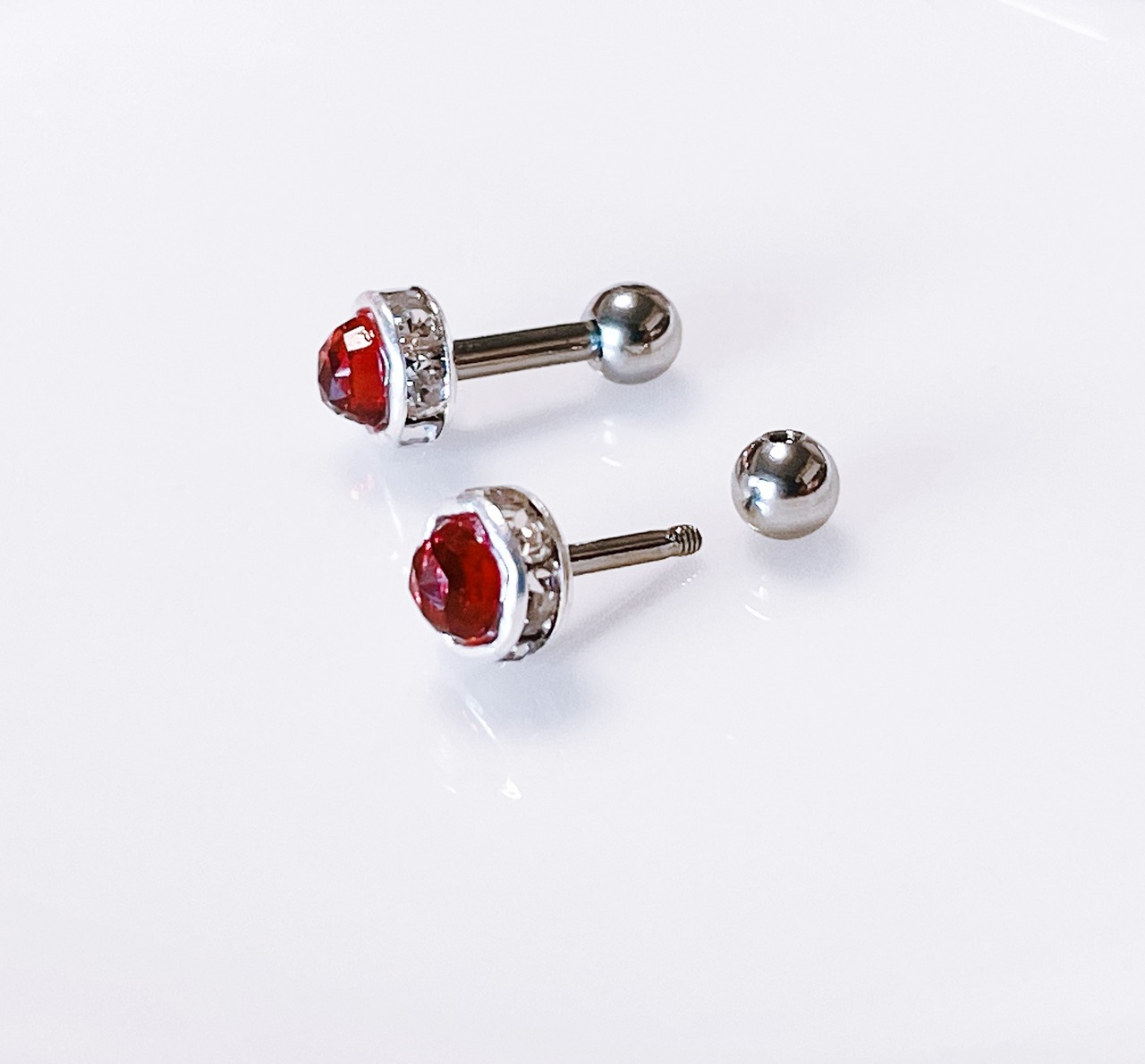 宝石質 モザンビークガーネット ローズカット加工 冬コーデ 天然石 ボディピアス 14G 軟骨ピアス 1月 誕生石 片耳