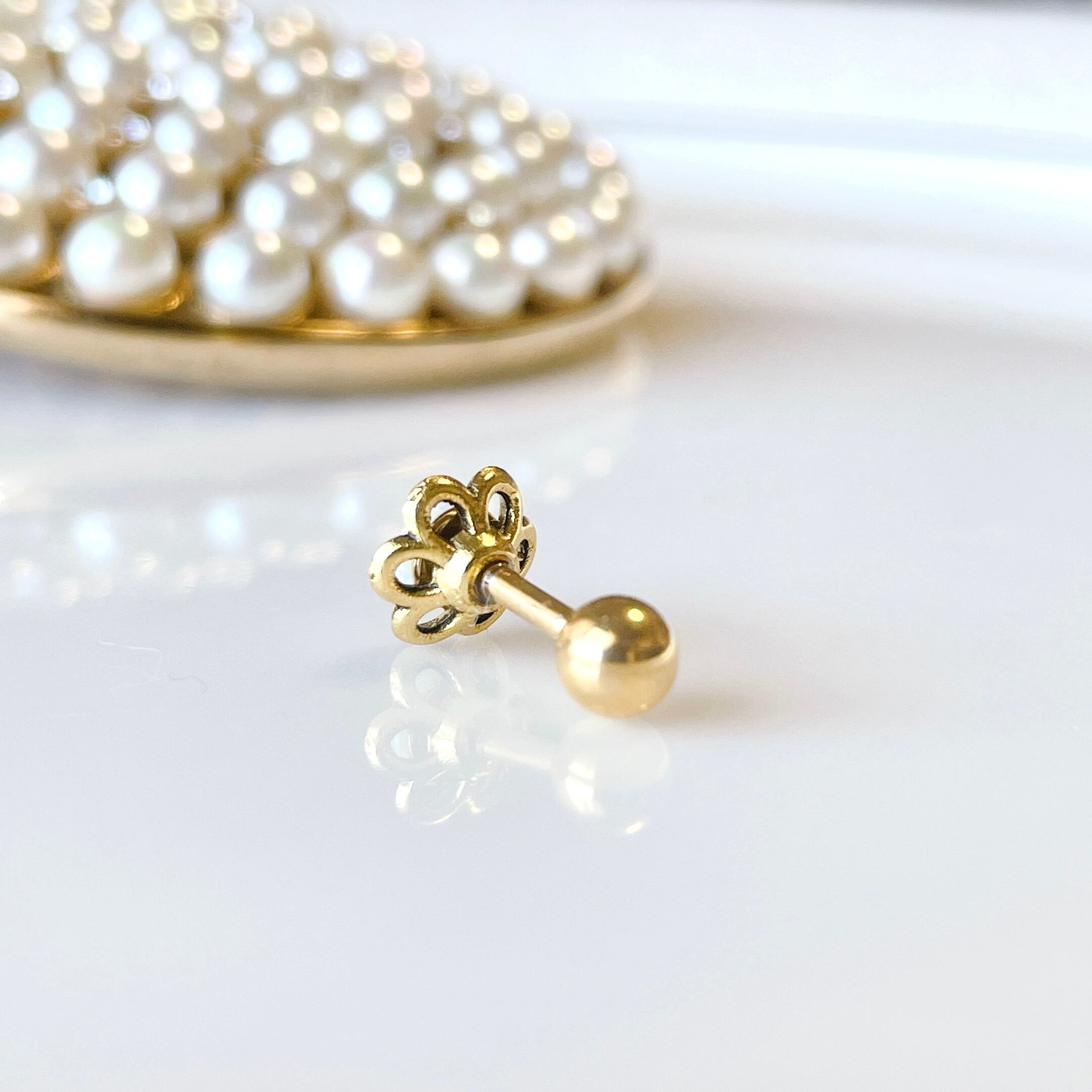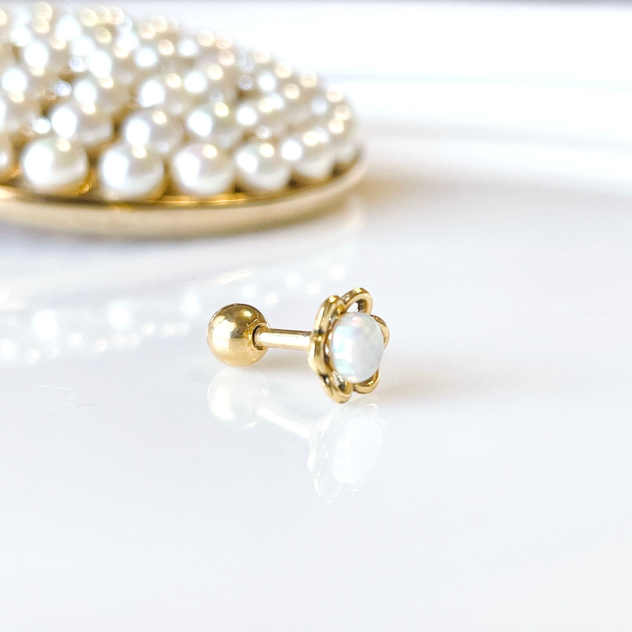 春 お花 フラワー オパール ボディピアス アンティークゴールド 16G 18G 軟骨ピアス 片耳