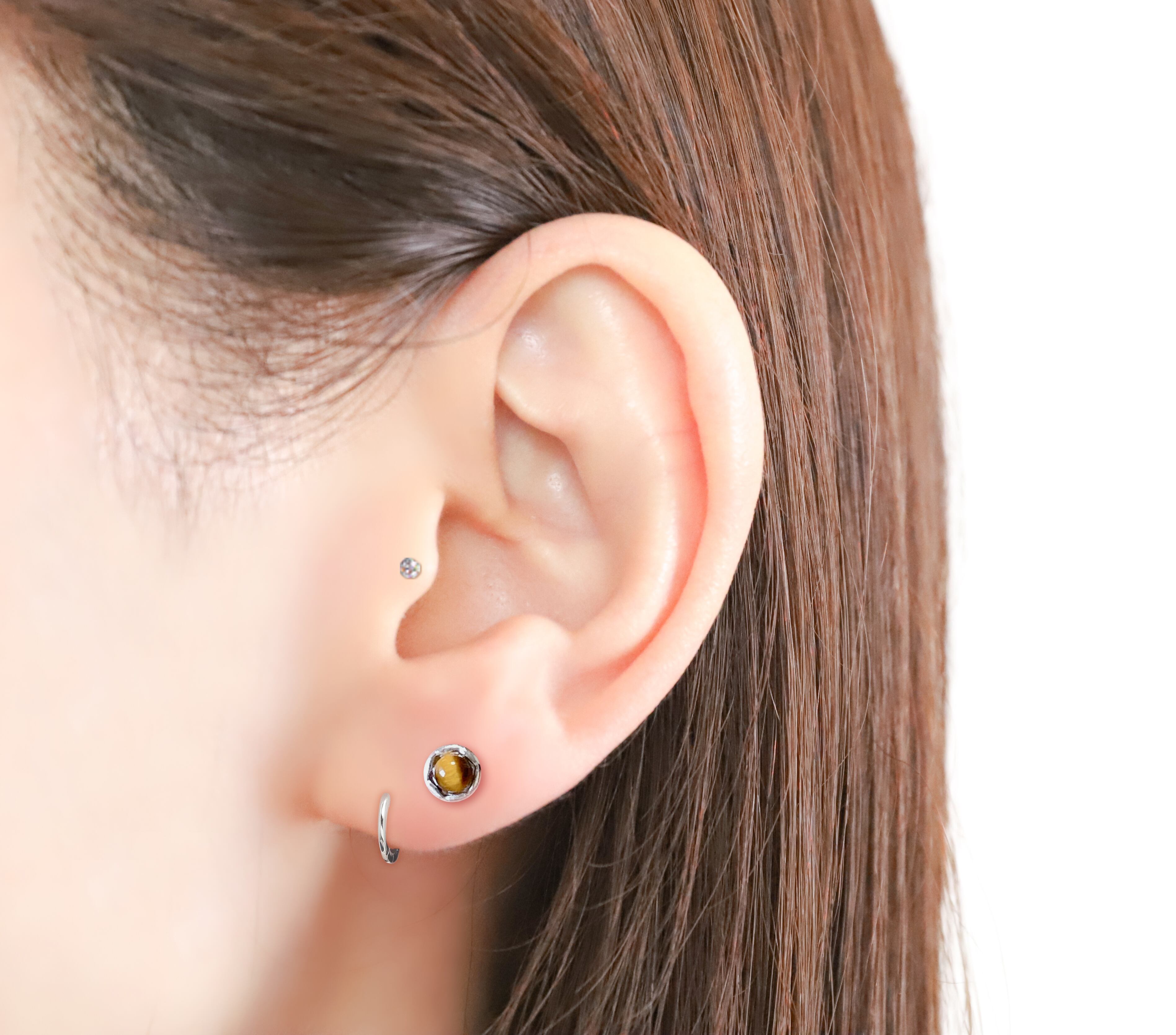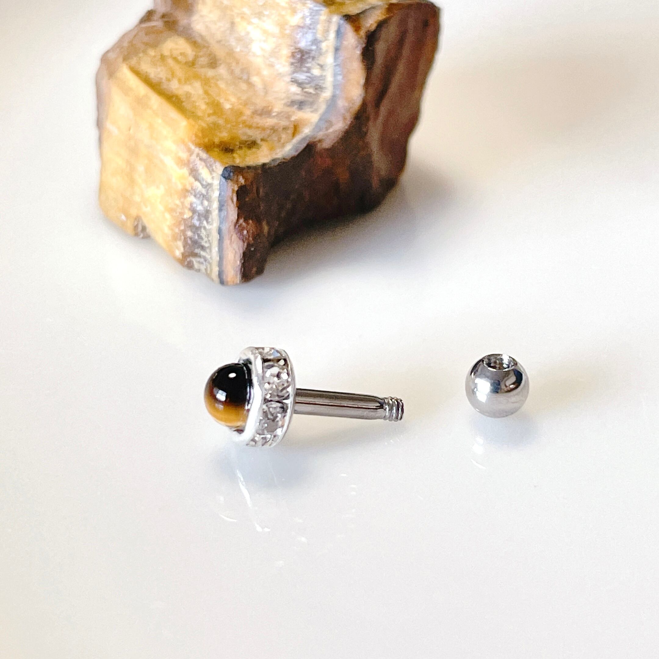 タイガーアイ 虎目石 ゴールド 天然石 ボディピアス 14G 16G 18G 軟骨ピアス 10月 誕生石 片耳