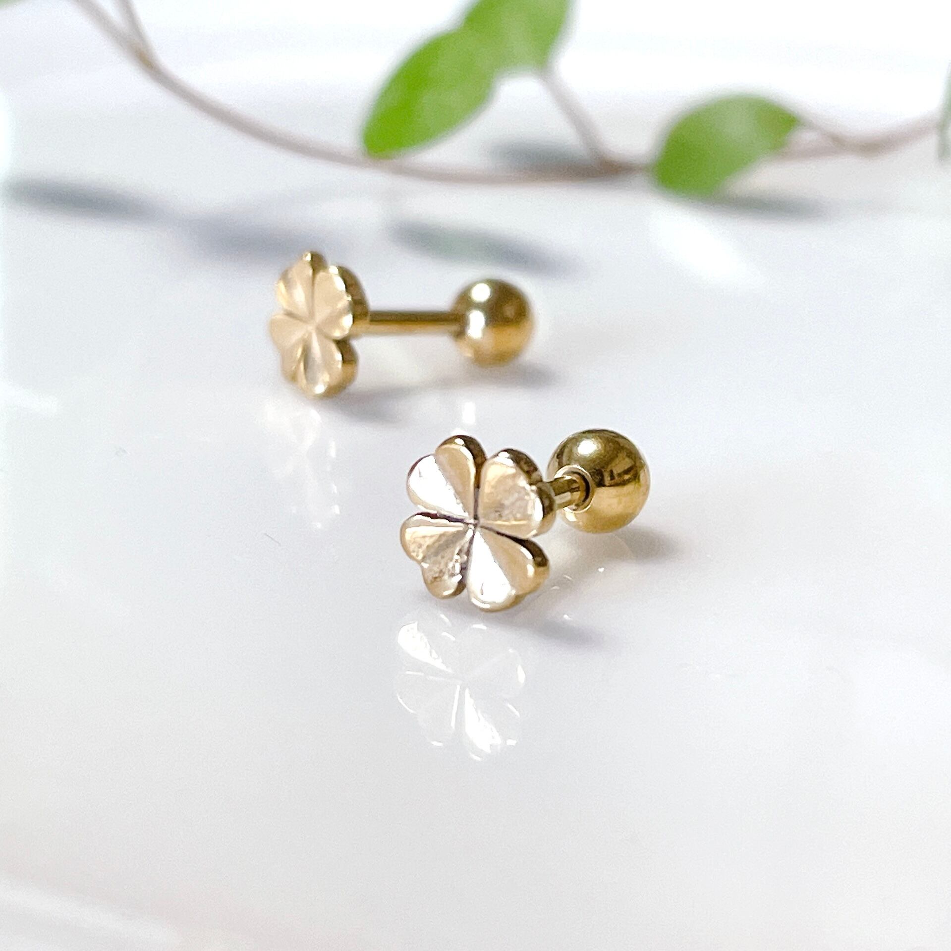 幸せの四つ葉のクローバー ハッピー ボディピアス 16G シルバー 軟骨ピアス 片耳