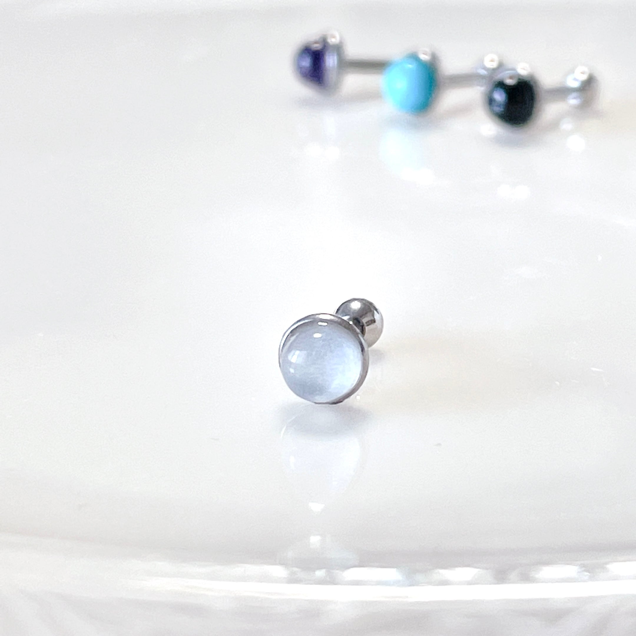 ひとつぶ天然石シリーズ ホワイトムーンストーン 天然石 ホワイト 月の満ち欠けを象徴する石 6月 誕生石 ボディピアス 16G 軟骨ピアス 片耳