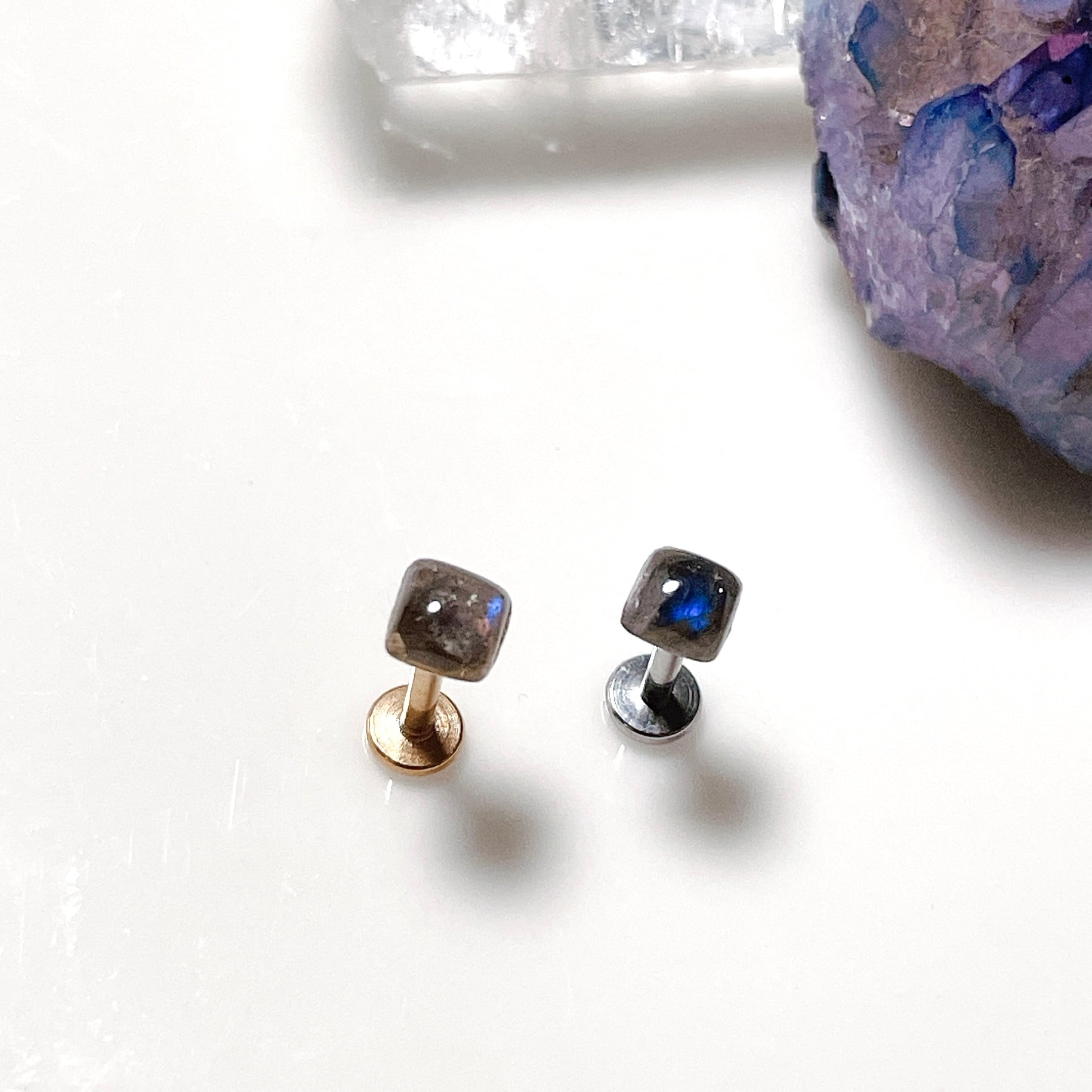 小さなスクエアストーンシリーズ 天然石 ラブラドライト ラブレット ボディピアス 16G 軟骨ピアス 片耳