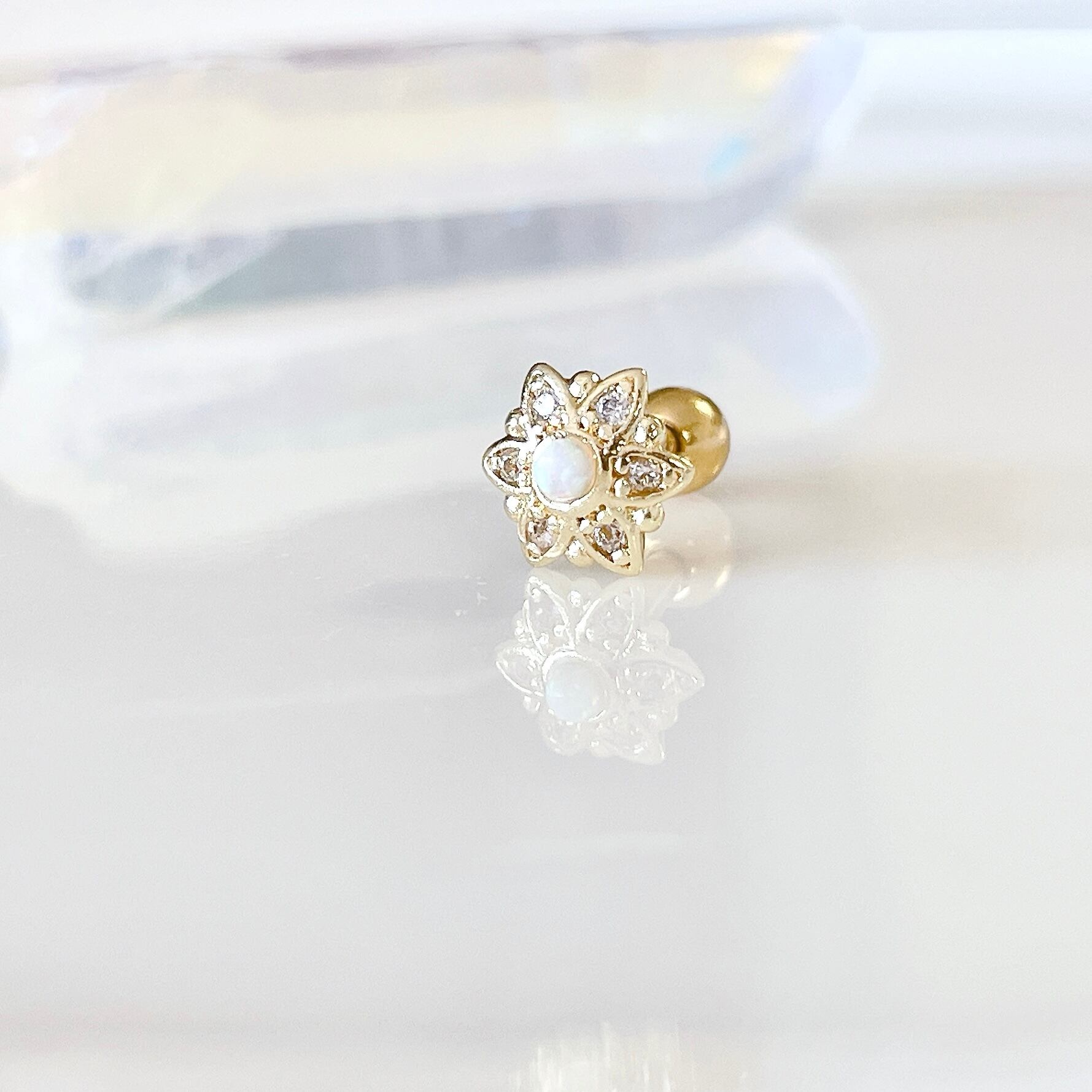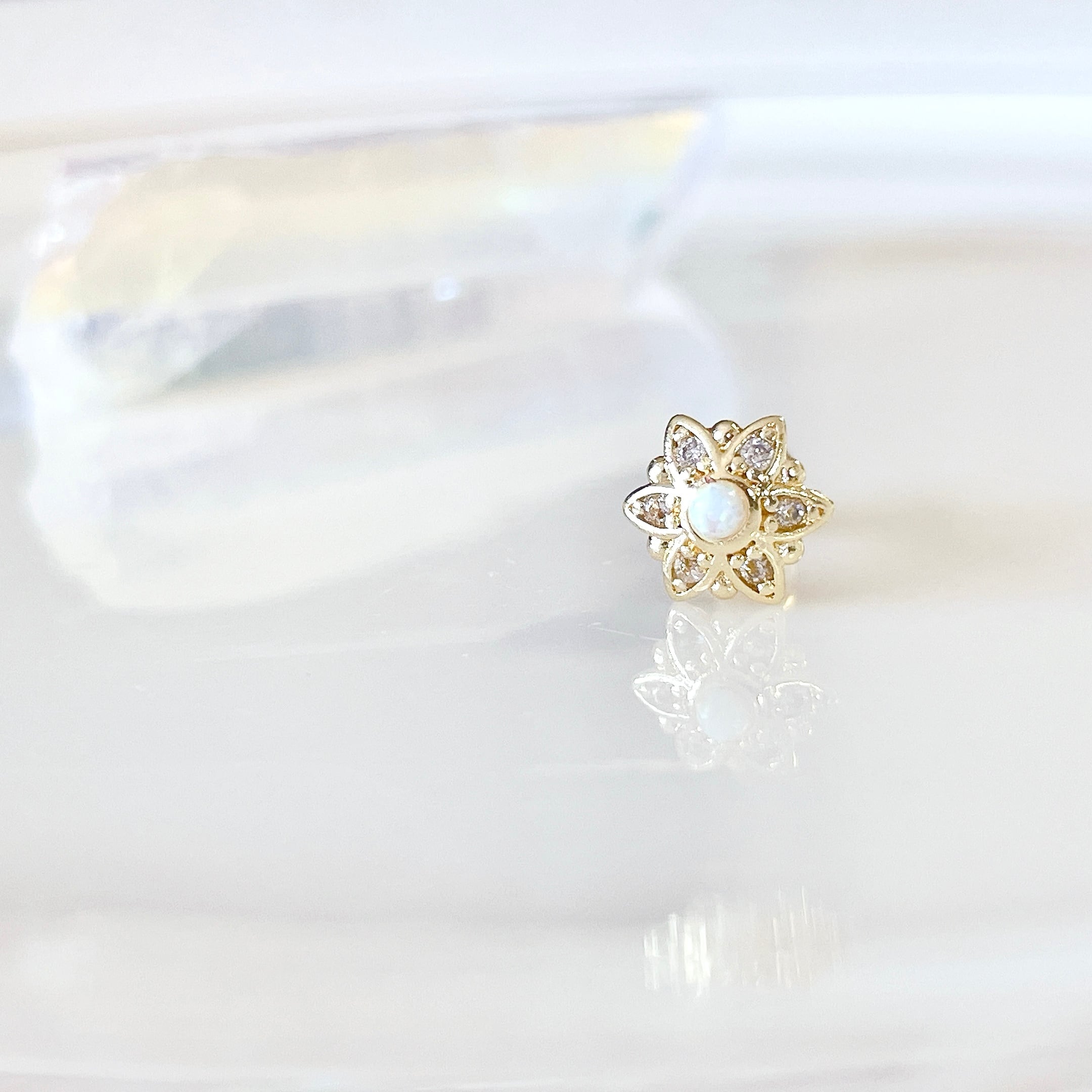 ロータスジュエリー×オパール ボディピアス ゴールド 高級感 シンセティックオパール 14G 16G 18G 軟骨ピアス 片耳