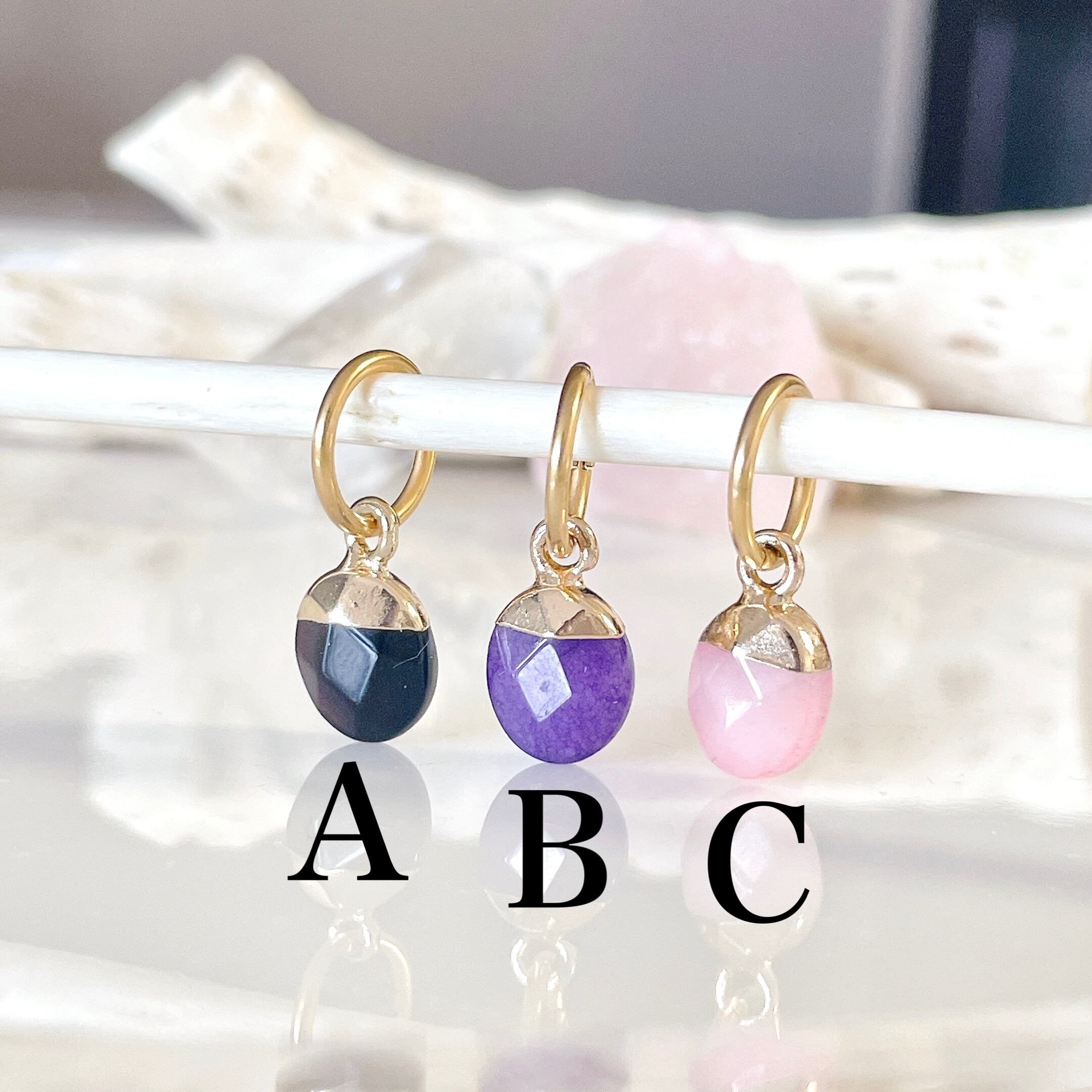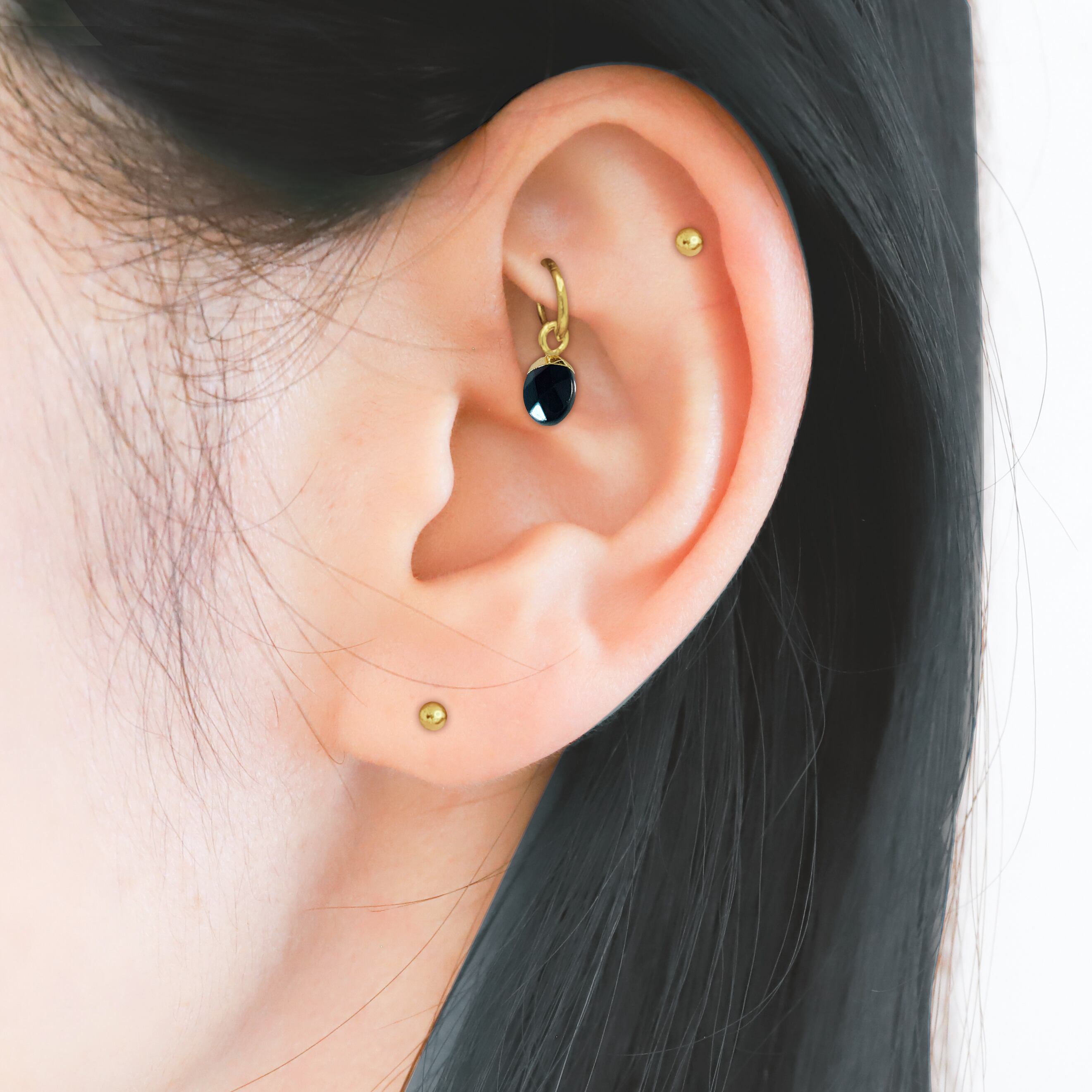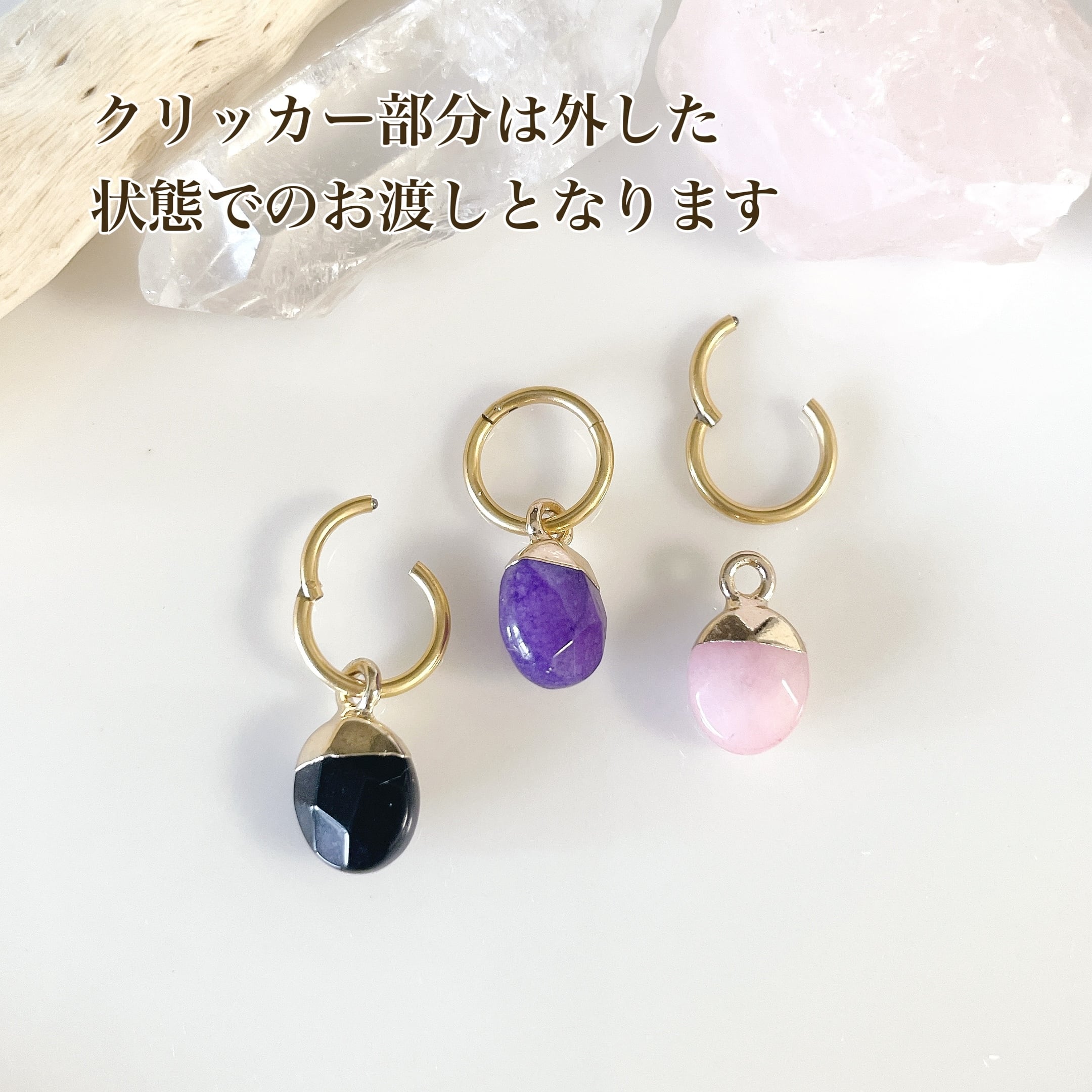 天然石が耳元で揺れる、リング型のボディピアスです。