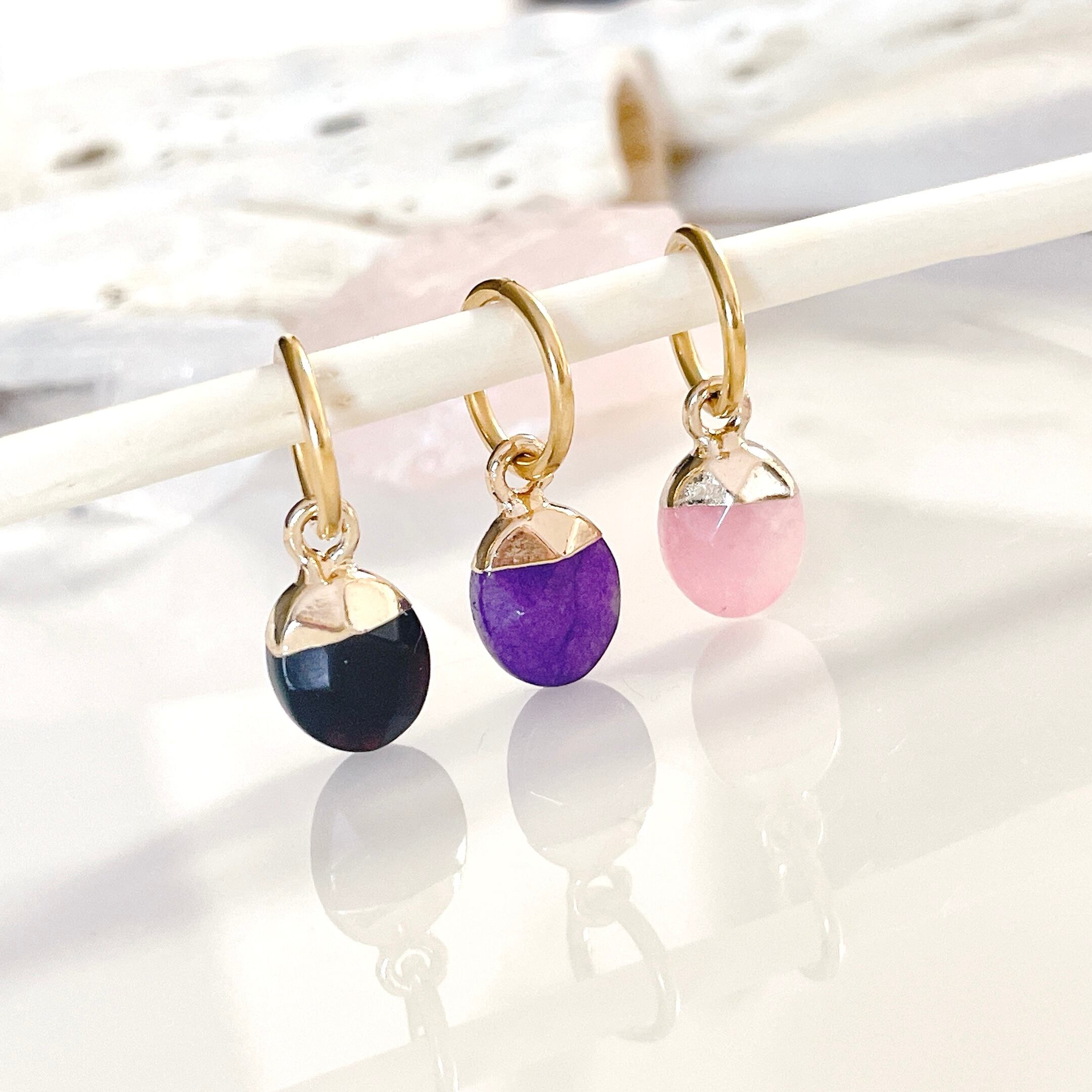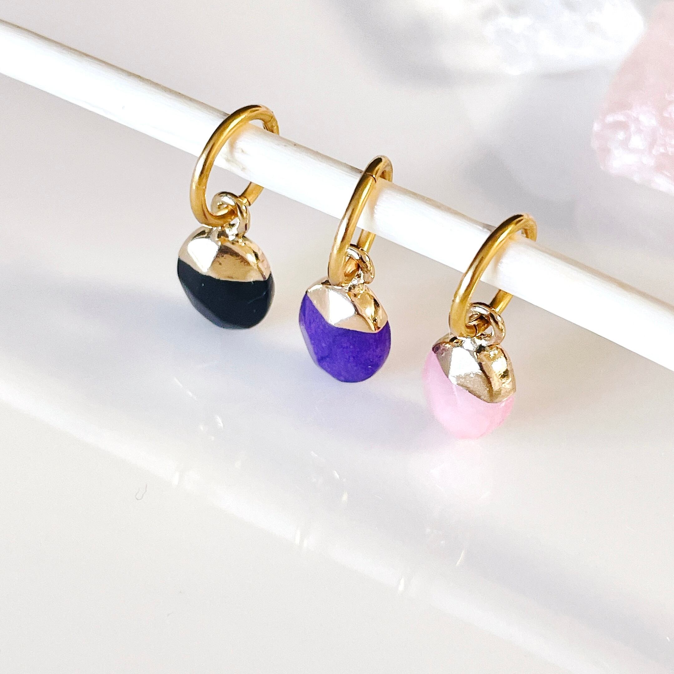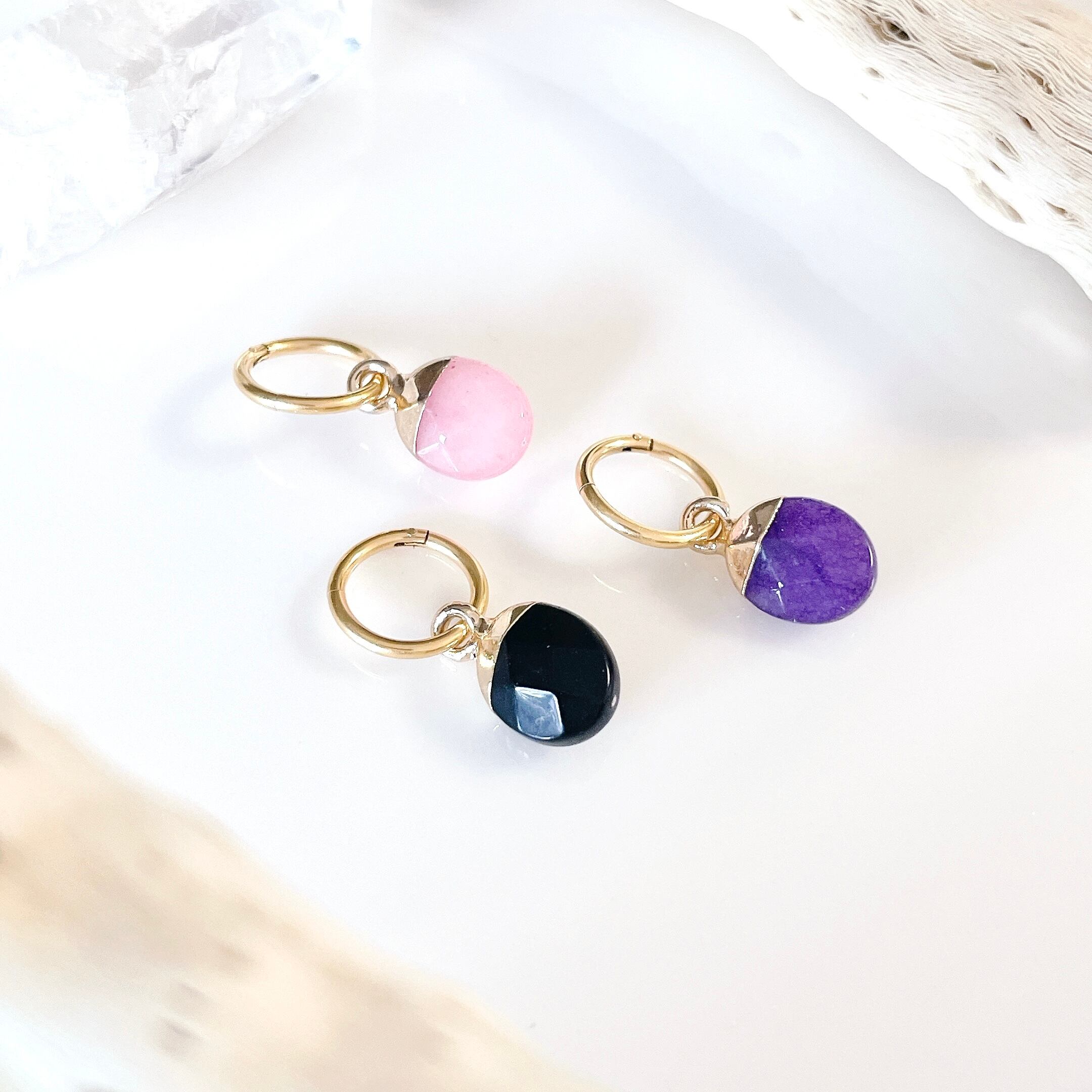 天然石が耳元で揺れる、リング型のボディピアスです。